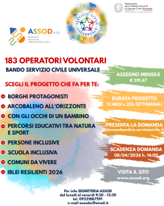 27 Feb SCHEDE SINTETICHE DI PROGETTO SERVIZIO CIVILE UNIVERSALE BANDO ORDINARIO – SCADENZA DOMANDE 8 APRILE 2026 ORE 14:00