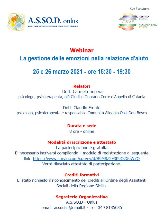 05 Mar WEBINAR: “LA GESTIONE DELLE EMOZIONI NELLA RELAZIONE D’AIUTO”